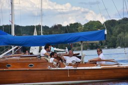 18 Schiffe waren beim Europapokal im Münchner Yacht-Club am Start. Die Teilnehmerfelder wachsen sowohl am Starnberger- als auch am Bodensee stetig und wir konnten wieder ein paar Neulinge in den Reihen der 45er Regatta-Szene willkommen heißen. Auf die Seglerinnen und Segler wartete eine perfekt organisierte Veranstaltung auf dem Wasser und zu Lande und hätte das Wetter auch noch mitgespielt, hätte es besser nicht sein können. Aber trotz schwierigen Bedingungen konnten am Ende sechs Wettfahrten nach Hause gefahren werden, wobei nur das letzte Rennen der Serie von den Bedingungen her "grenzwertig" war....