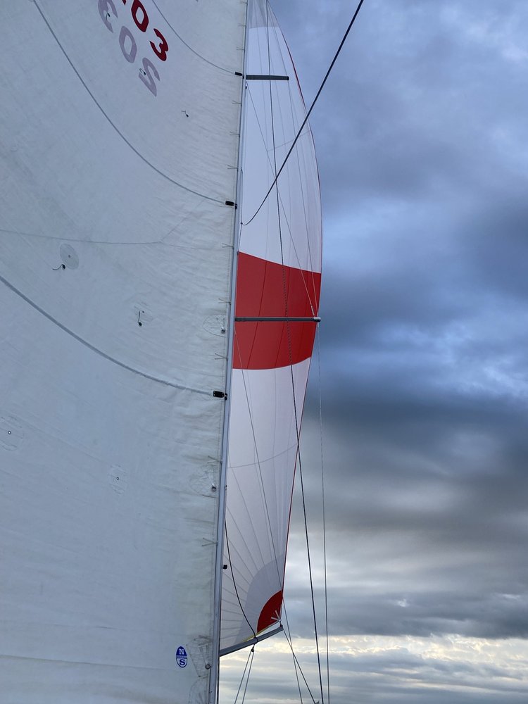 Pünktlich um 07:00 Uhr starteten wir mit einem guten West- Südwest 2-3 und konnten gleich mit Spinnaker davonziehen, am Anfang sogar mit über 8kn. Der Wind ließ einen direkten Kurs auf Bregenz zu, sodass der Spi nur 2x geborgen wurde.