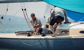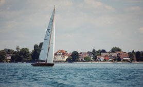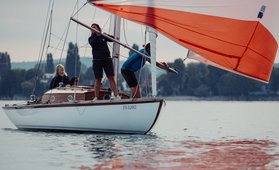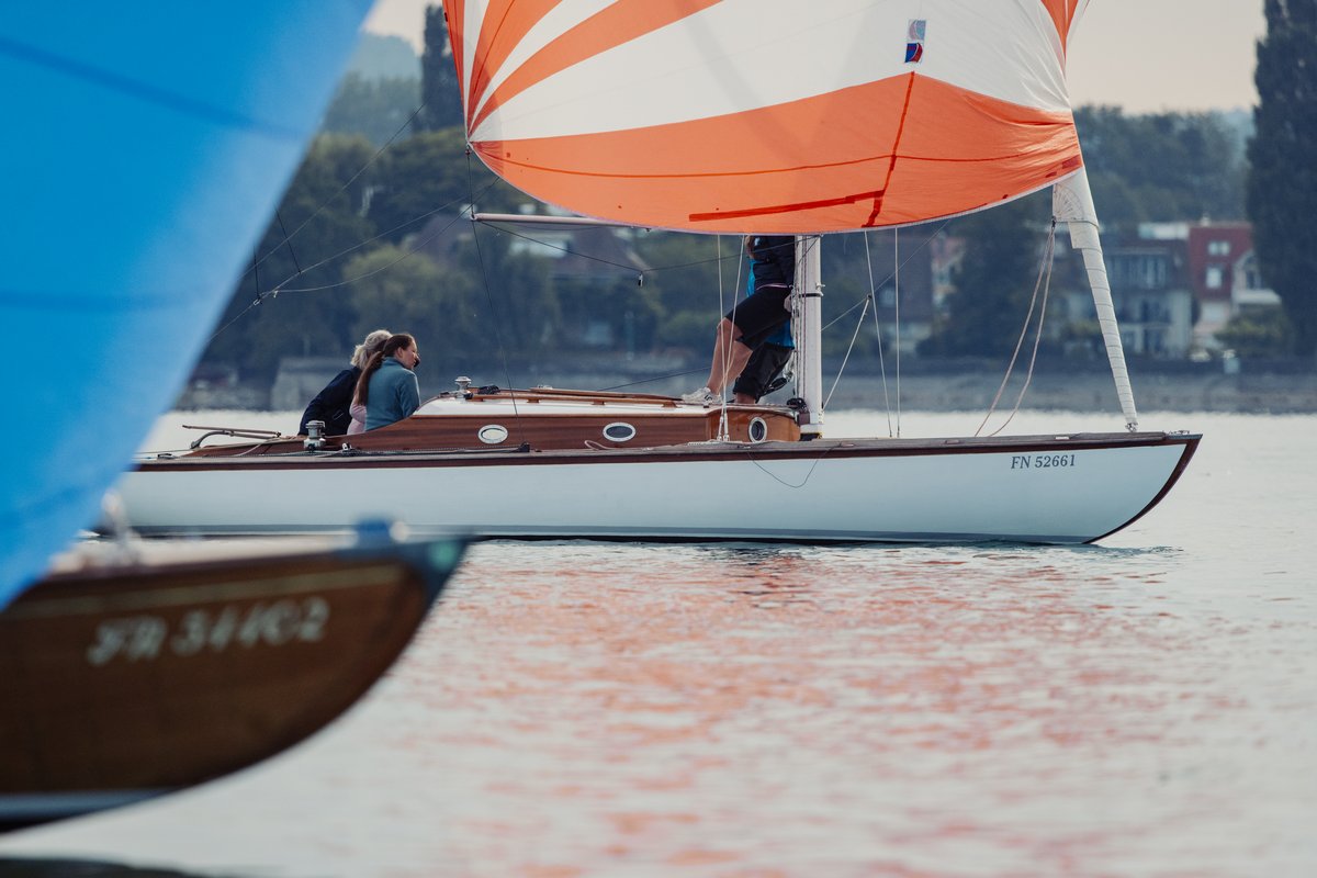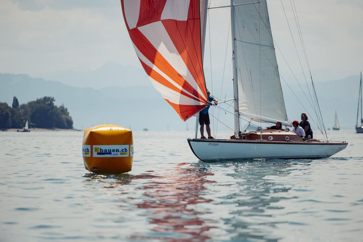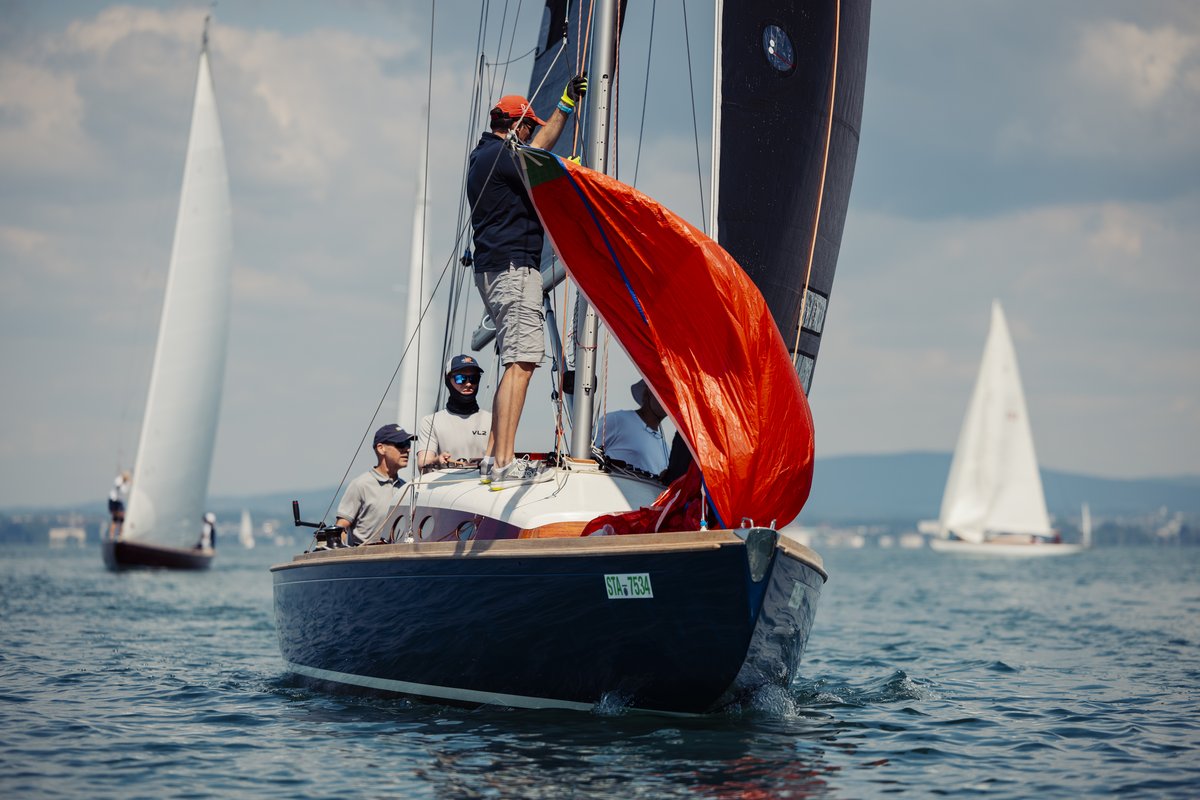 Bereits am Abend war klar, dass der Samstag in Bezug auf den Wind noch herausfordernder werden würde. Alle Wettermodelle meldeten Flaute, aber die Hoffnung der Wettfahrtleitung lag auf dem Rheintäler – jenem thermischen Frühmorgenwind, der zwischen 06:00 und 09:00 Uhr bei klarem Wetter über den See ziehen kann. Dies führte dazu, dass mit den Crews abgestimmt wurde, ob eine Startbereitschaft um 07:00 Uhr mitgetragen würde. Die Zustimmung war nahezu einstimmig, und so gab es ab 05:45 Uhr Kaffee im Regattabüro, bevor wir noch etwas verschlafen die Boote klar machten.