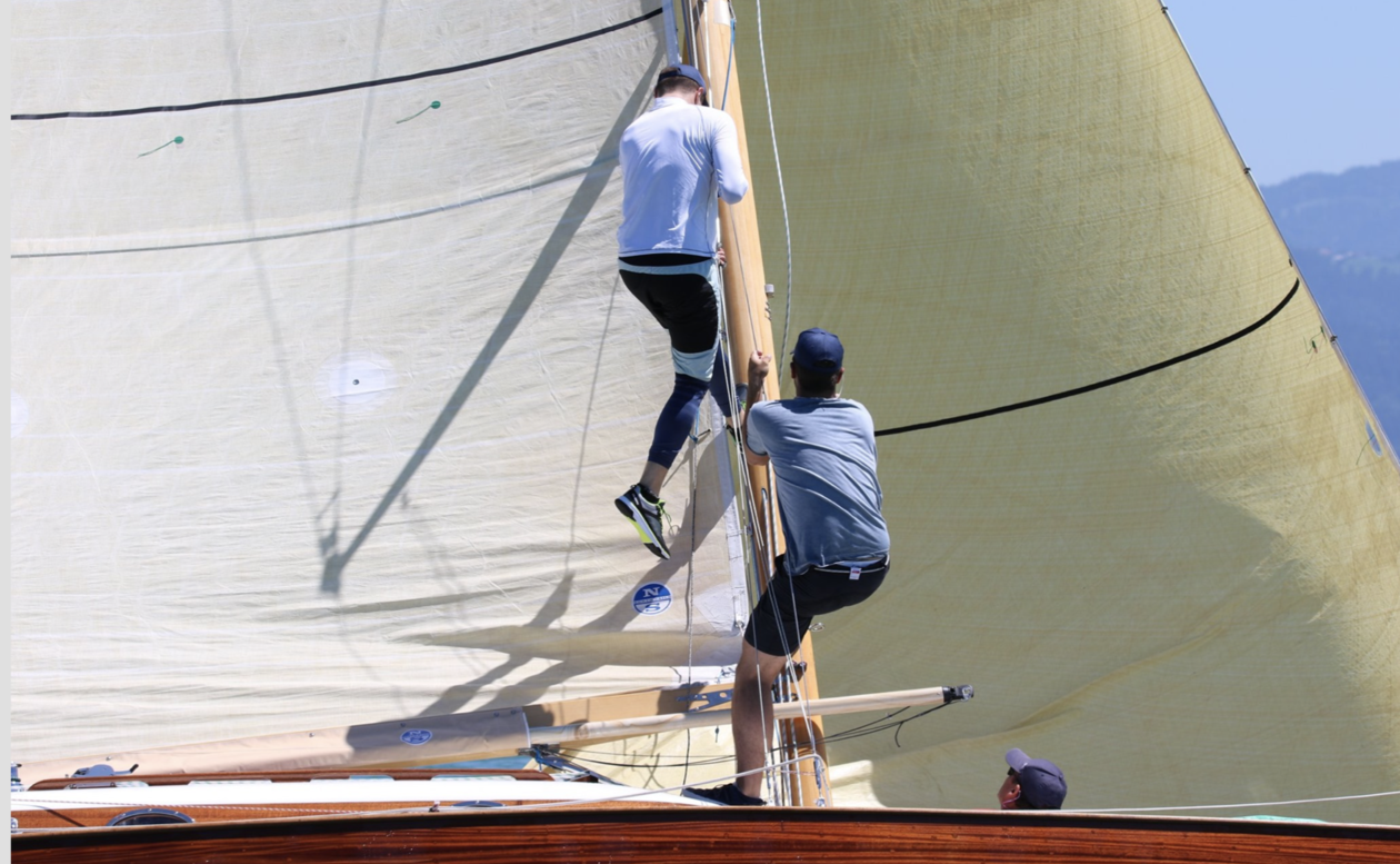 Leider nur ein kleines Grüppchen von 45er-Seglern hat sich in diesem Jahr zum traditionell bestens organisierten Harder Cup eingefunden. Ein Teil der aktiven Flotte vertrat den Bodensee beim Prinz-Ludwig-Preis am Starnberger See, was zu Terminüberschneidungen führte. Aber das sind fast schon Luxusprobleme, zieht man in Betracht, dass am Wochenende in Summe bei beiden Veranstaltungen 15 45er die Regattabahnen absegelten.