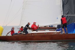 Für Sonntag wurde Startbereitschaft 9:00h signalisiert. Tatsächlich waren alle um 9.00h draußen an der Startlinie. Bei Nord bzw. Nord-Ost-Wind, ca. 2 Bft., abflauend, ging es auf die Bahn. Wir passierten zwar als erste die Luvtonne, die Freude währte aber nicht lange. Die May gewann vor dem Schelm und dem Schuft.Auch die zweite Wettfahrt bei weiter abflauendem Nordwind sah die Favoriten vorn. Schuft vor Pfeil mit neuem 8-fach durchgelattetem Großsegel und der May.