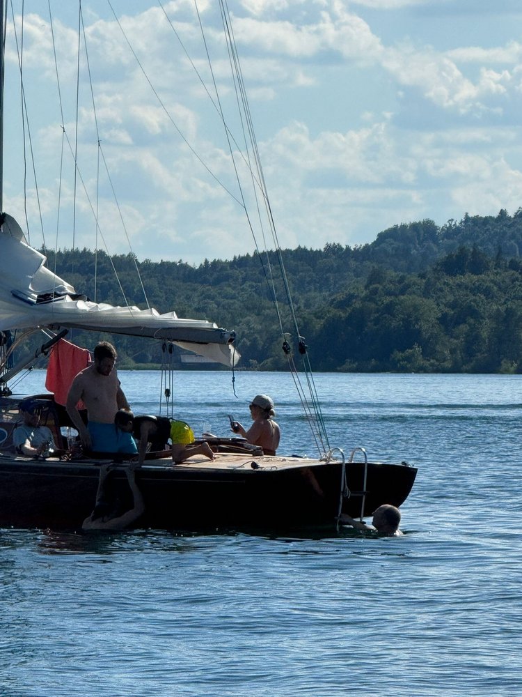 Am Freitagnachmittag konnten wir bei extrem drehendem Wind aus Westen 1 -2 Beaufort vor Schloss Berg 4 Rennen starten und auch zu Ende segeln. Wegen der extremen Winddrehungen kam es jedoch zu einigen Startversuchen.
