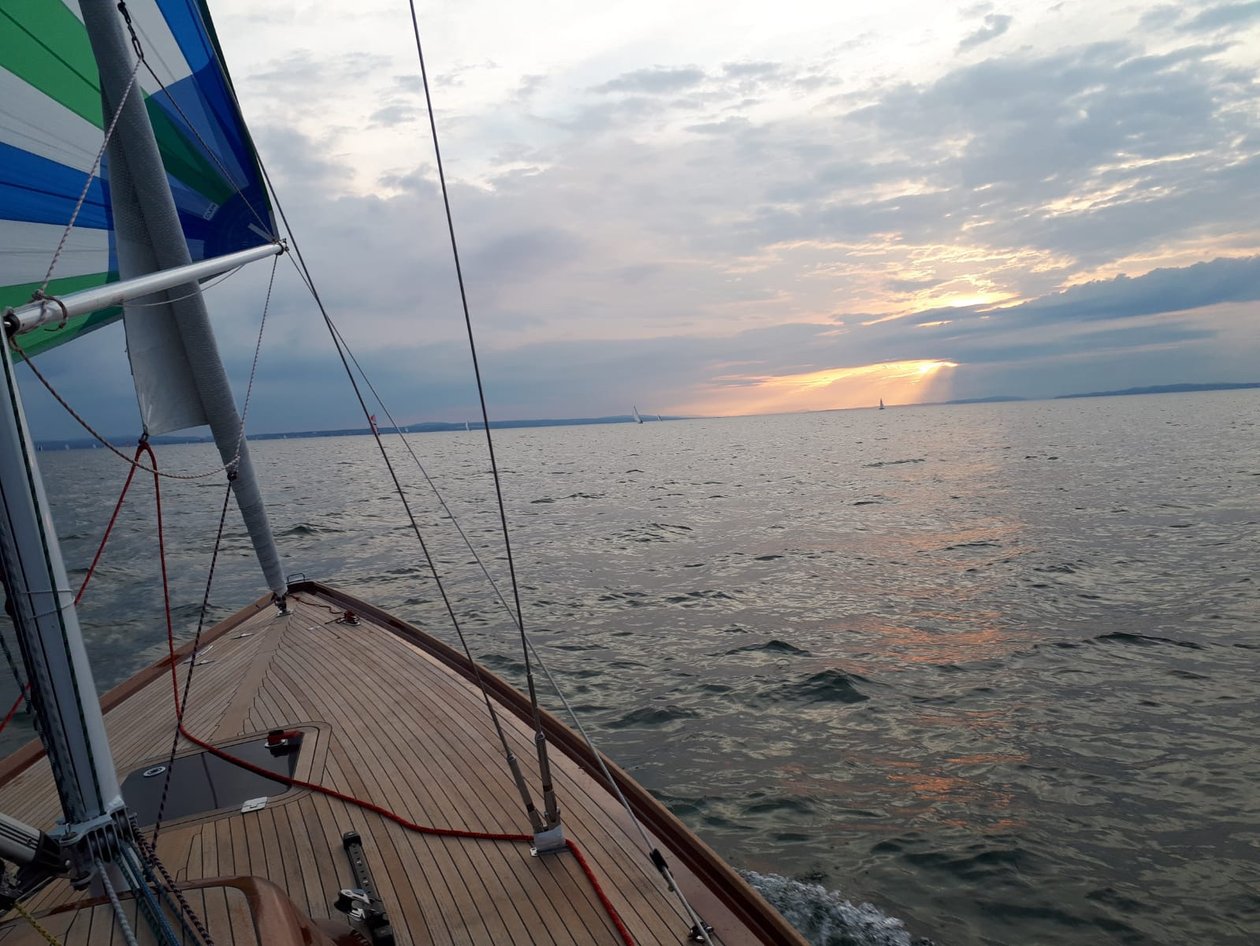 Um 21.40Uhr rundeten wir die erste Bahnmarke in Romanshorn, Gaudeamus dicht hinter uns. Unter Spi hatten wir mittlerweile auf die Genua 1 gewechselt, die uns dann auf einem Am-Wind-Kurs nach Konstanz bringen sollte.