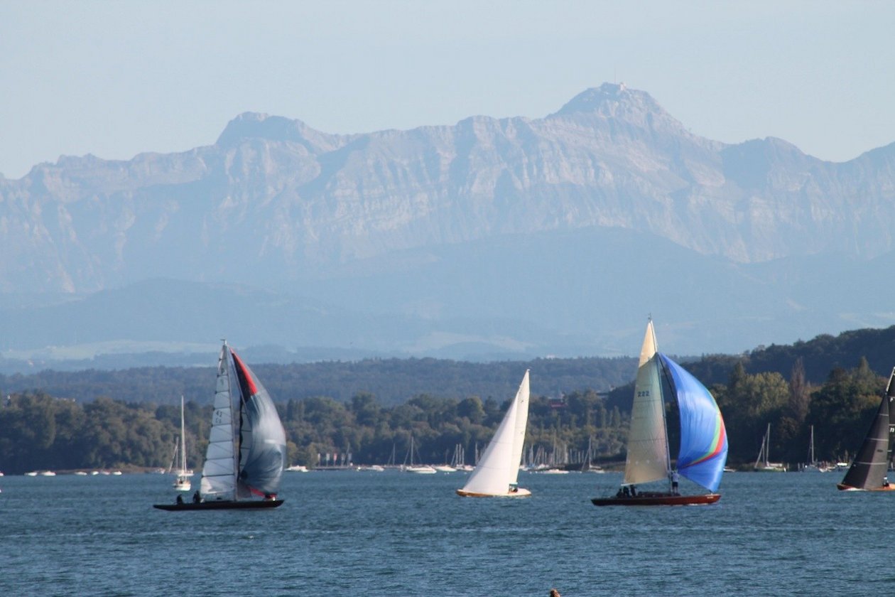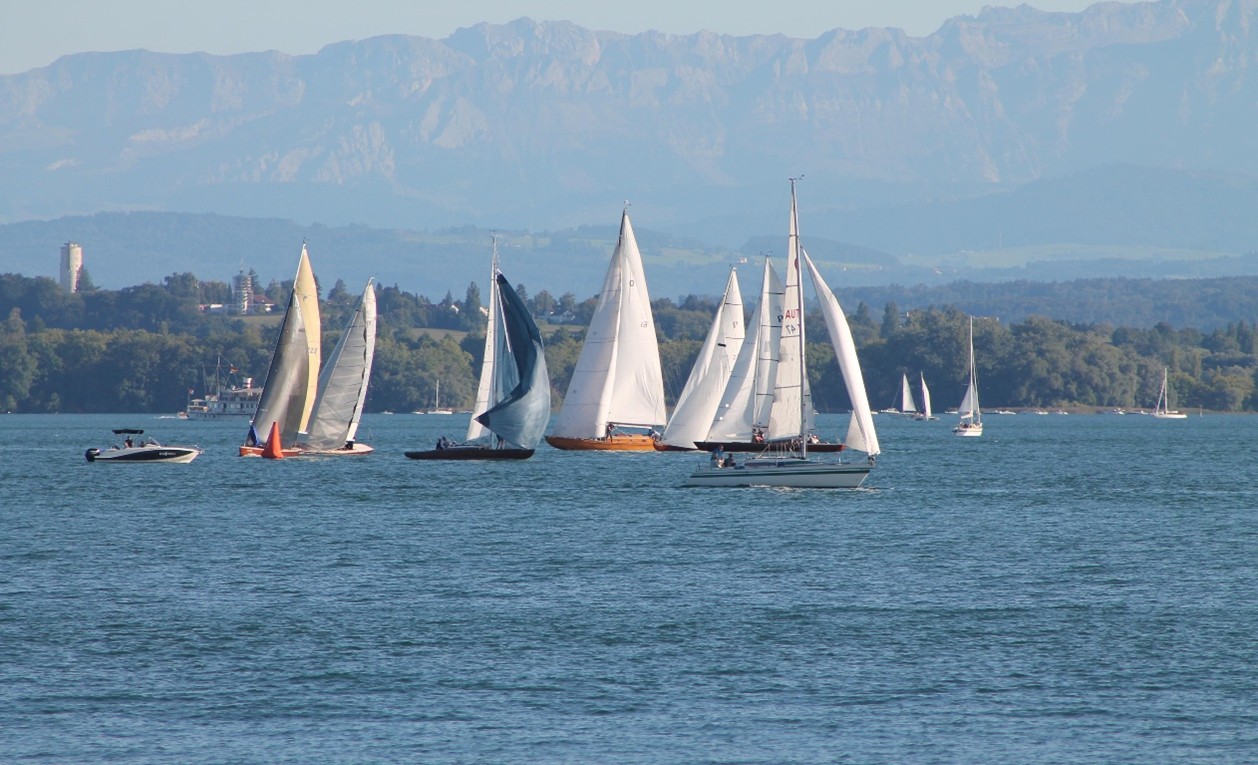 Der erste Regattatag zeigte sich von seiner sonnigen Seite mit wunderbarer Fernsicht. Allerdings waren die Winde sehr wechselhaft und forderten von den Steuerleuten wie auch den Crews viel Aufmerksamkeit. Von den drei gestarteten Wettfahrten, konnten zwei gewertet werden.